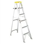 For painters and other tradespeople; ideal for use in institutional settings and apartment buildings. Molded plastic top holds quart paint can and has slots for small hand tools. Extra-large automatic pail shelf with outer retaining edge and rag rail. Full 3 inch U-channel serrated steps. Angle bracing on bottom step and all back bars. WARNING: Metal ladders conduct electricity, do not use where contact may be made with live electrical circuits. Material(s): Aluminum; Color(s): Aluminum; Yellow; Number of Steps: 4; Duty Rating: 225 lb.DADAS4008 - #428 Eight-Foot Folding Aluminum Step Ladder
